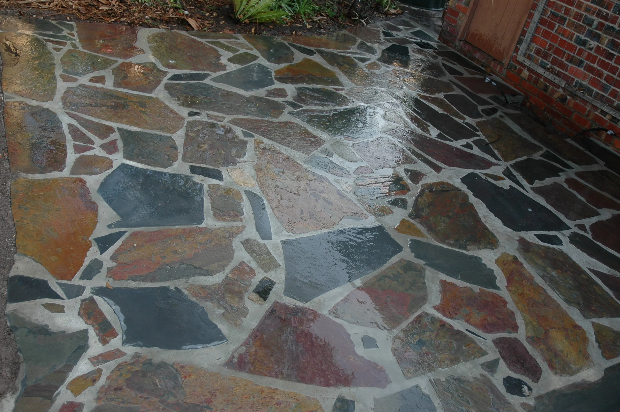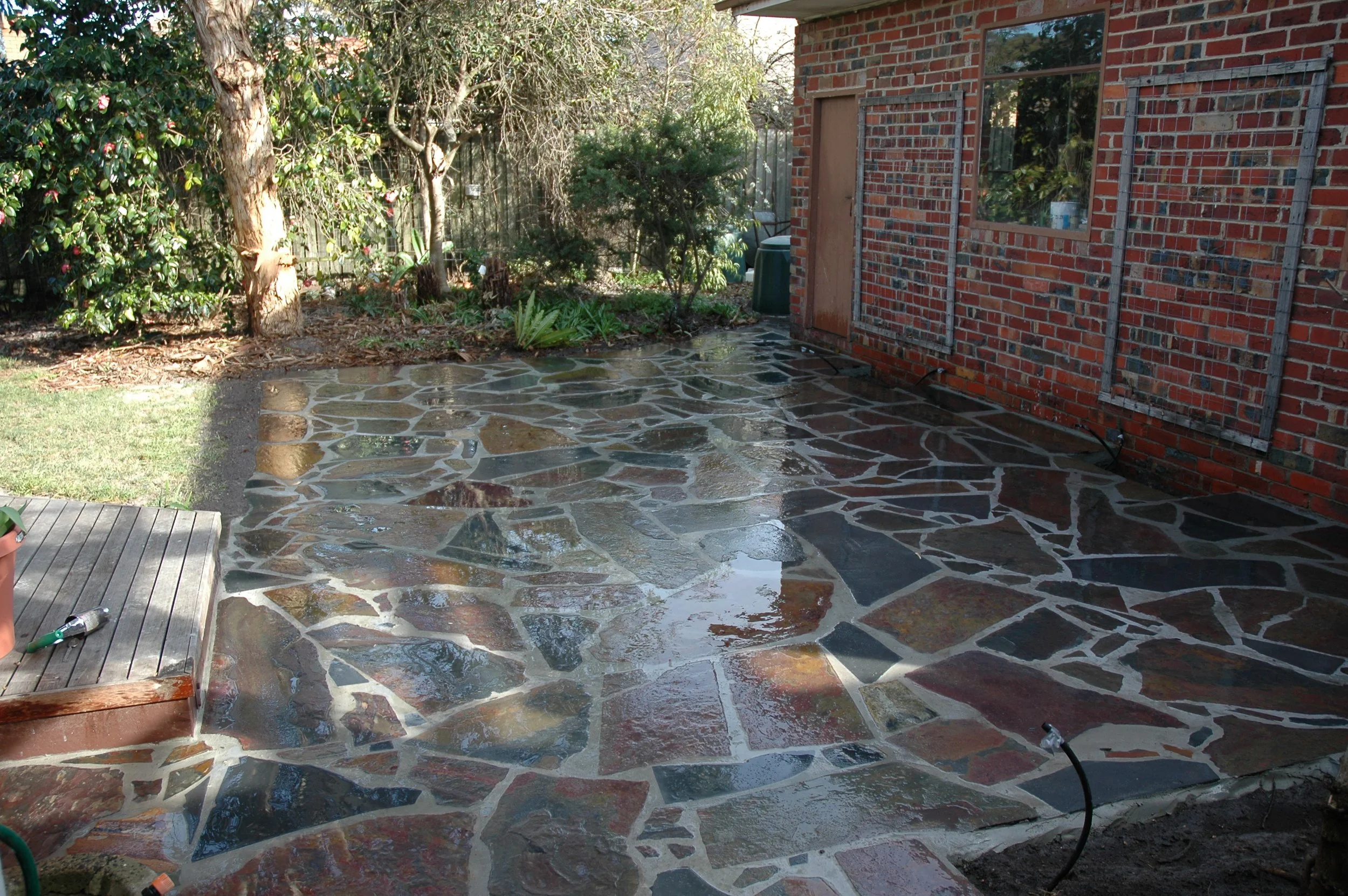 Natural stone in crazy paving to provide visual impact and a point of difference